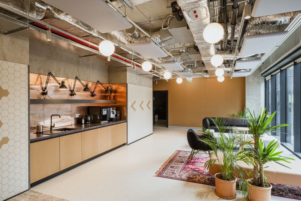 辦公室旅行的下一階段是加油站。公共區(qū)域的一個(gè)部分是電池充電的地方--手里拿著一杯咖啡。就在它旁邊,我們有自助餐廳,靈感來自路邊的酒吧。最后,公共區(qū)域的最后一部分是海灘,專門用于休息和合作。位于中心位置的公共空間既能整合近300名工作人員,又能保持工作區(qū)域的平靜。我們?cè)谀抢镆灿腥齻€(gè)不同的區(qū)域:一個(gè)舒適的,私密的辦公室,優(yōu)雅的汽車內(nèi)飾和一個(gè)原始的,極簡(jiǎn)的,絕對(duì)是最“辦公室”的閣樓。